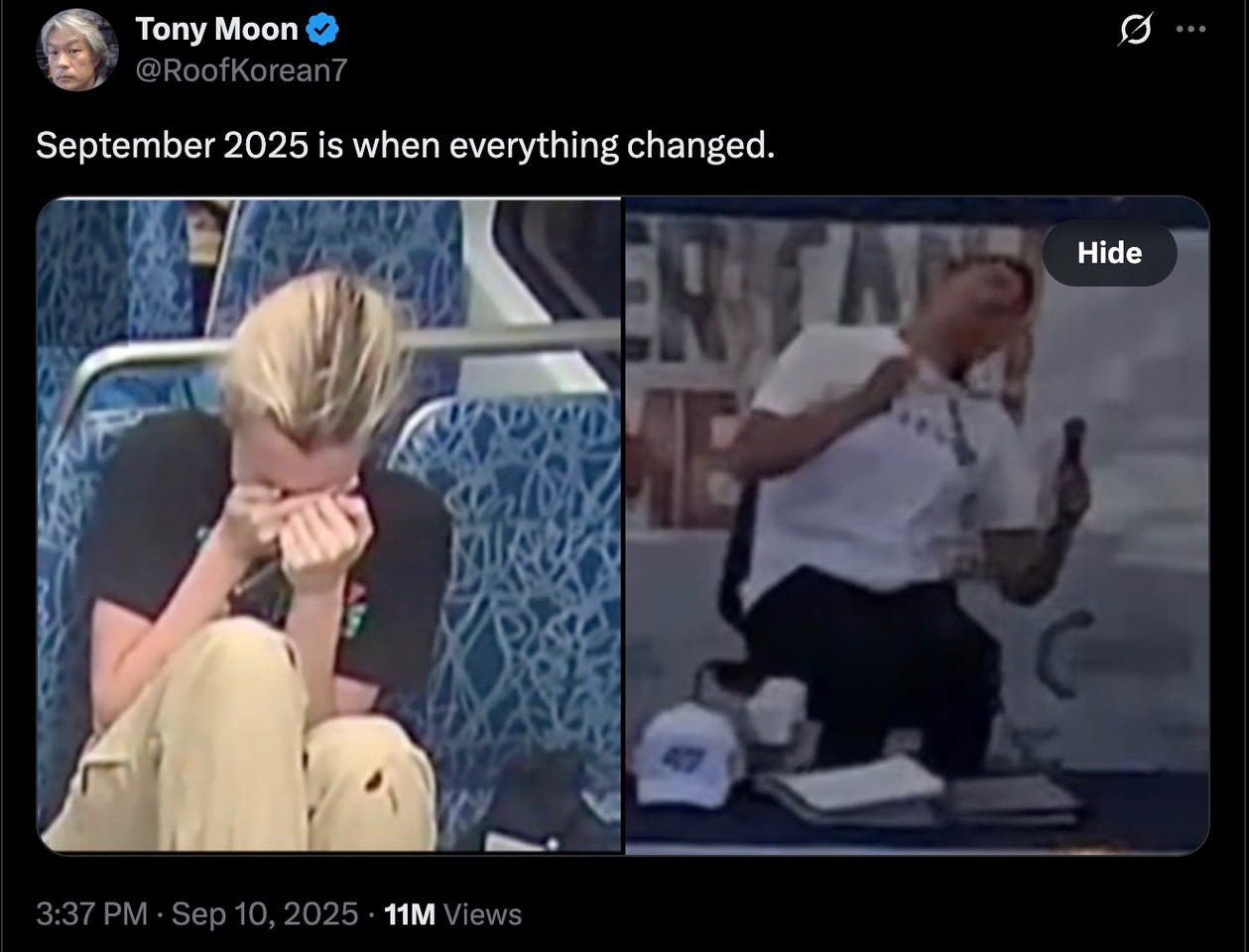 One man has an idea to go to college campuses around America and talk to his political opponents. Another man has the idea to kill him. Now, a young man – a husband and a father – is dead. RIP Charlie Kirk. That the statement “People should not be murdered for expressing different opinions” even needs to be uttered is indeed a sad commentary on the state of affairs in the world today.