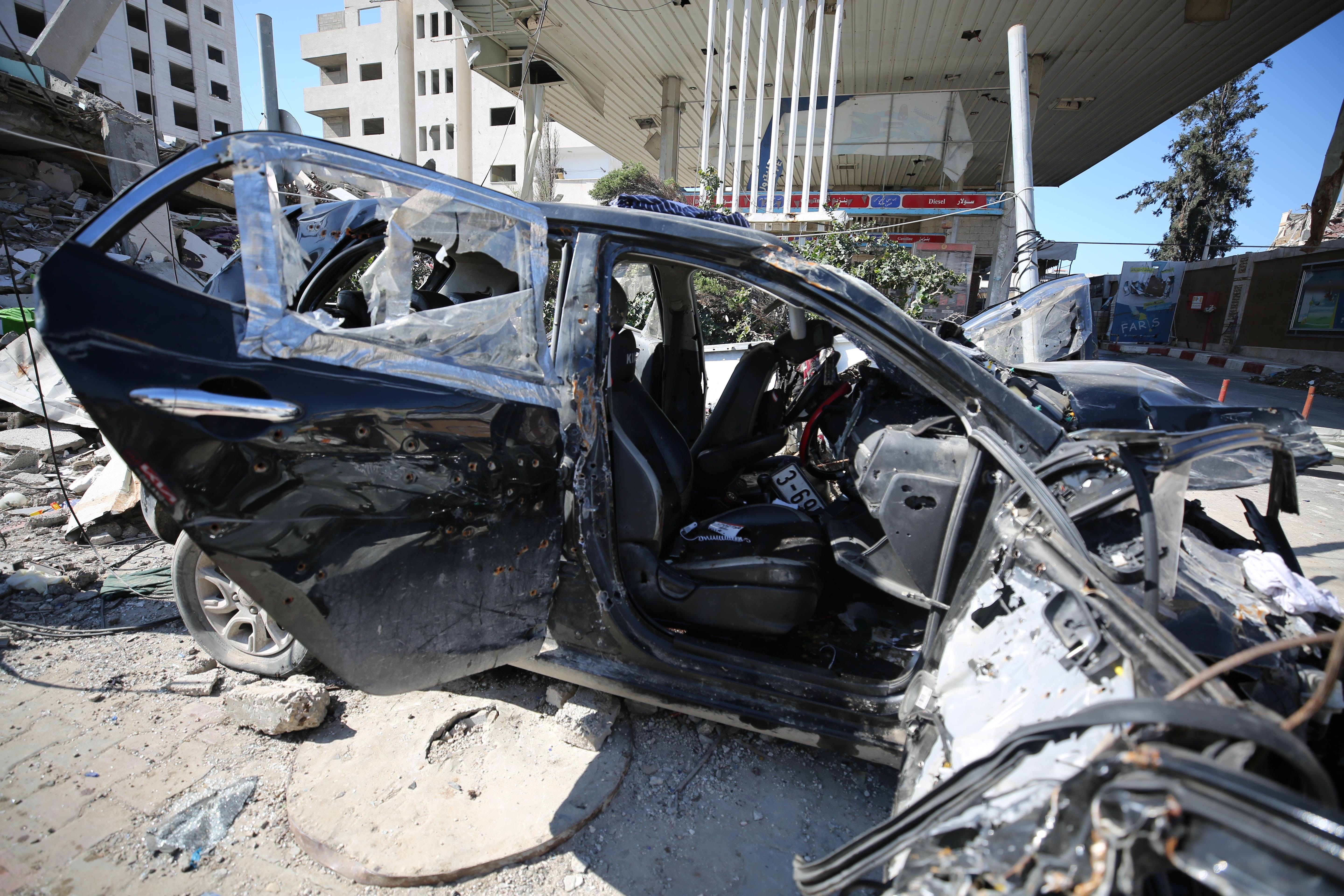 The destroyed car which 6-year-old Hind Rajab and five members of her family were killed after targeted by Israeli forces in Tel al-Hawa neighborhood of Gaza City (Photo by Dawoud Abo Alkas/Anadolu via Getty Images)