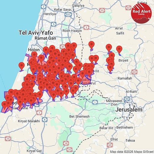 At 02:24 on Sunday morning, a ballistic missile launched toward central Israel. Sirens sounded at 02:27. Three minutes. Whatever is left of the sensor network - and there isn’t much - bought three minutes. Standard warning time is fifteen. A later strike hit Tel Aviv with no warning at all. Cluster munitions scattered across Ramat Gan, Bnei Brak, Petah Tikva. Channel 12 reported significant destruction and fires at three locations. Dead and wounded pulled from a building in Bnei Brak.