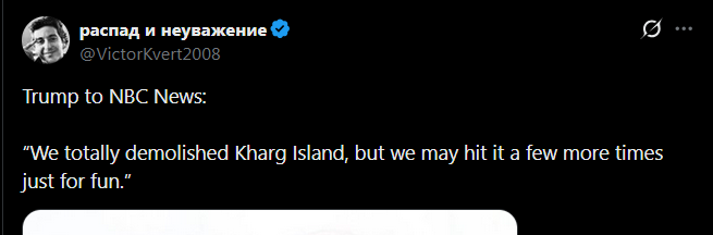 By Saturday night, the story had changed. Trump on NBC: the strikes “totally demolished” most of the island. Then, almost as an afterthought: “we may hit it a few more times just for fun”. Schrödinger’s island. Both demolished and intact…