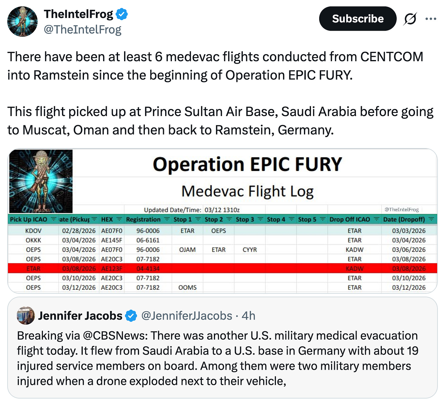 Meanwhile on the battlefield, US casualties are mounting. News broke late Thursday afternoon that Iran, or a group supporting Iran, shot down a KC-135 with at least five crew on board… All perished in the crash. Then there is this bit of news from X: